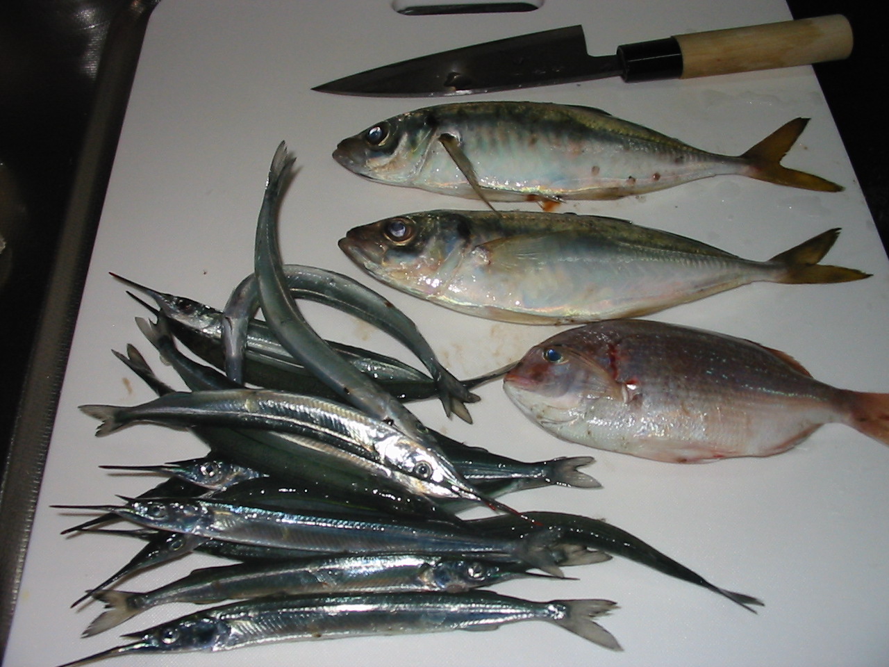 本日はキス、ハゼ、エソ、アジ、サバ、サヨリ、キビレ、シバスと8目はご立派!ですが少々消化不良。