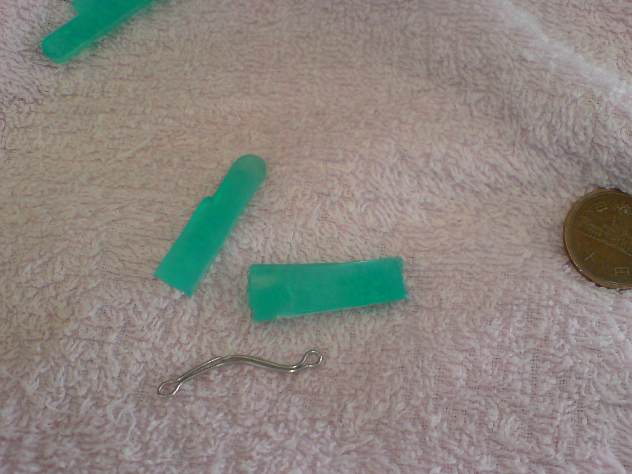今度は例の樹脂をワイヤに抱き合わせるようカット。