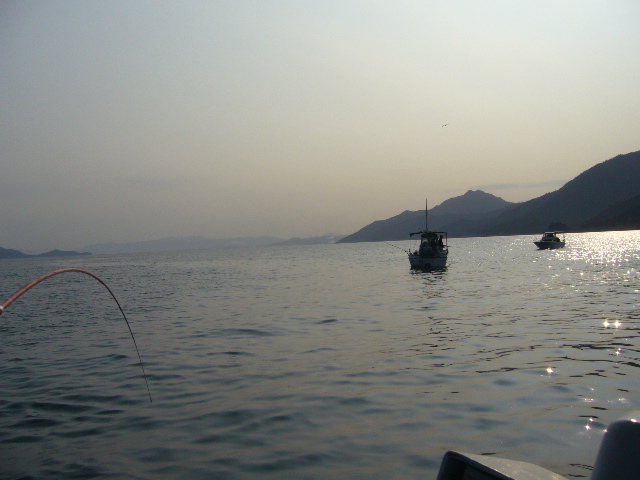 以外に入れ食いだったんですがマズメポイントに移動、こちらは大船団、おおむね夜間は20Mから上に浮いてます。
