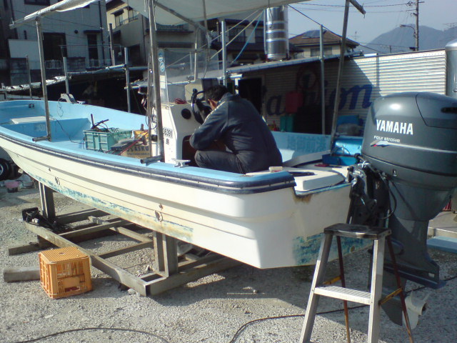 GPS&魚探を取り付け、ハンドル周り、電気関係を整備してもらってます。