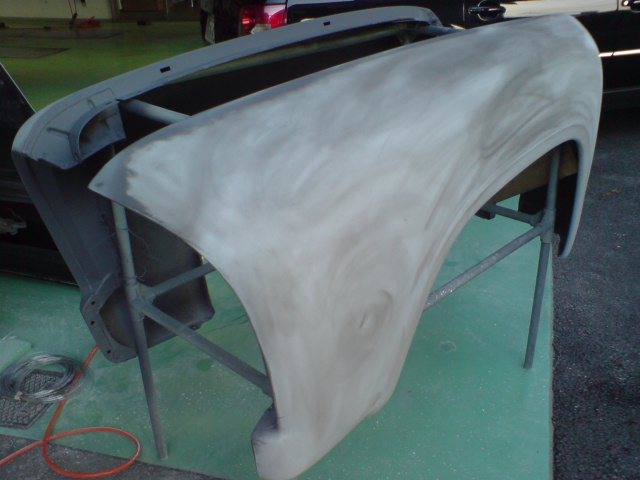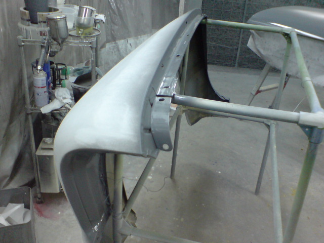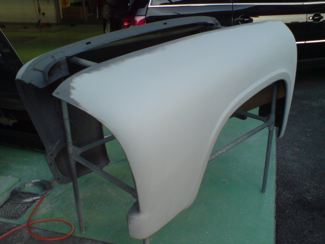切り離したフェンダーの耳の色剥ぎ&サフェーサです、こういう細かく入り込んだ部分は意外とたいへんなんですが。