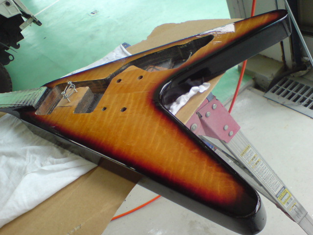レストア中のVはいわゆる67年モデルで、あのレニークラヴィッツの愛器モデルである。