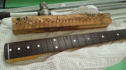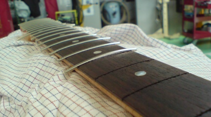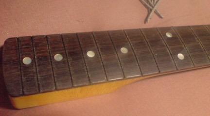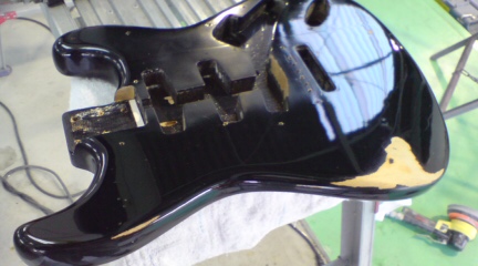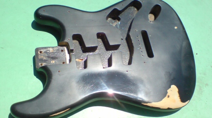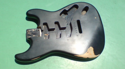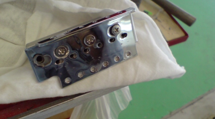 きちゃなくも出来上がるがナイフエッヂ部の作りが悪くサスティーンブロックが大きくボディぎりぎりの為かトレモロが不安定かな?