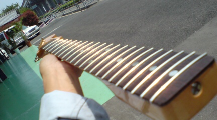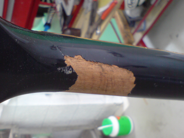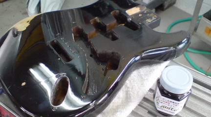塗って日向で乾燥させてると(注:乾燥は24時間)ピックガードのセルロイドにドータイトの溶剤が反応したか?太陽熱か知りませんが