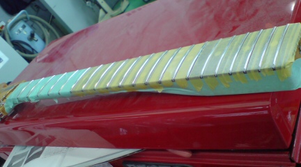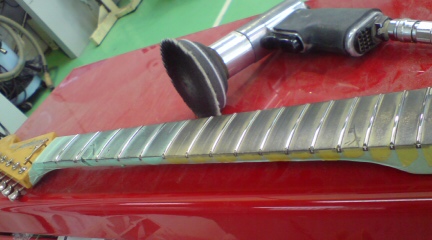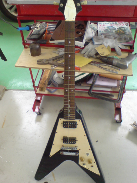 仕事をサボりつつ仕事の合間を縫って作業している合体ギターであります。