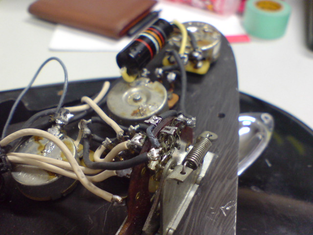 どーですか~1200円バンブルビーなのだ!ハンダはヴィンテージ44、ポッドはCTS2個とフェンダーUSAポッドでした、形はCTSだが刻印ないのよね。