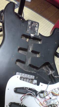 材はセンかアルダーの3Pで継ぎ目にクラックあり、なんかラッカーぽいかな、ネックにもボディにも刻印無く本籍不明である、しかも不思議に線香(香木?)くせ~。