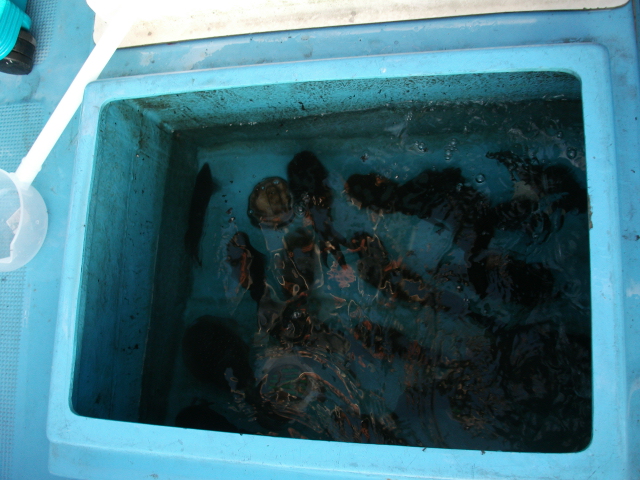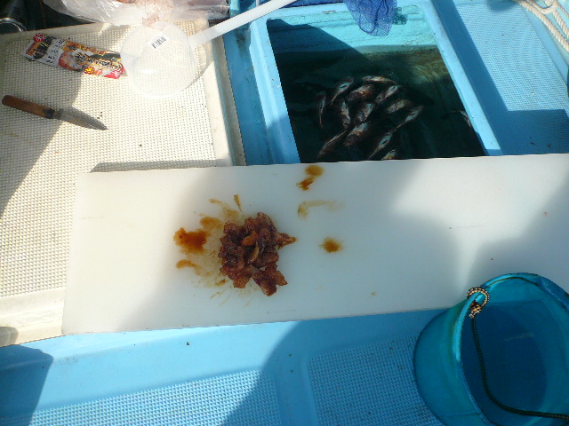 その後は延々とやず君ナブラ、トイレの暇も無いほどな感じでした、昼過ぎに少し落ち着いた間に、酸欠になった生簀整理してる間も船べりボイル........入り江が落ち着くと岬周りで鳥山!!