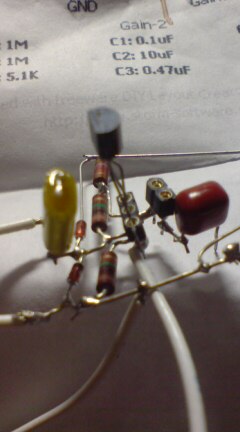 今回は簡単な回路ゆえ、基盤無しの超ポイントトゥポイント!(手抜きではない)、抵抗もDALE(1個50円!)なゴージャス?仕様です。