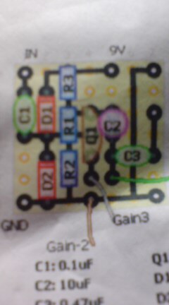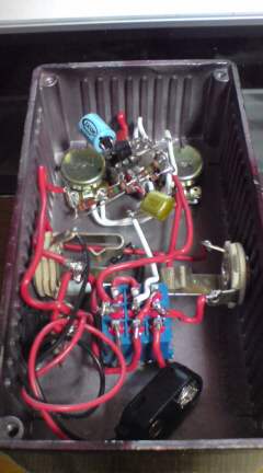 参照はあつさんという方のレイアウトで、トーン、ゲイン、VOLのポッドが追加MODされ、SUPER FAT ONとなってますね、記事を読んでみるとオリジナルは音がでかすぎな為、調整が必要かなとの事、コレは益々俺好み!